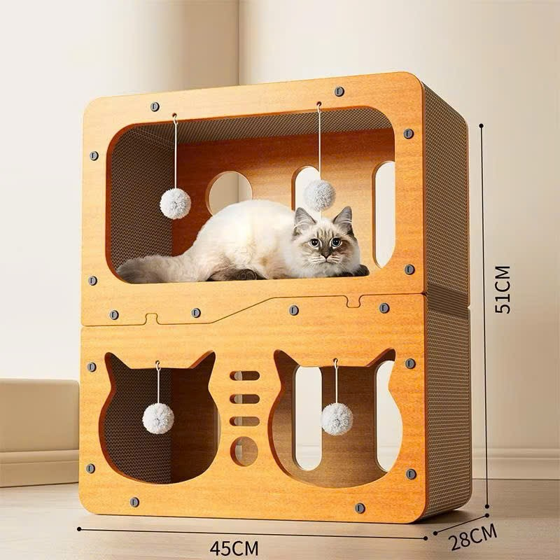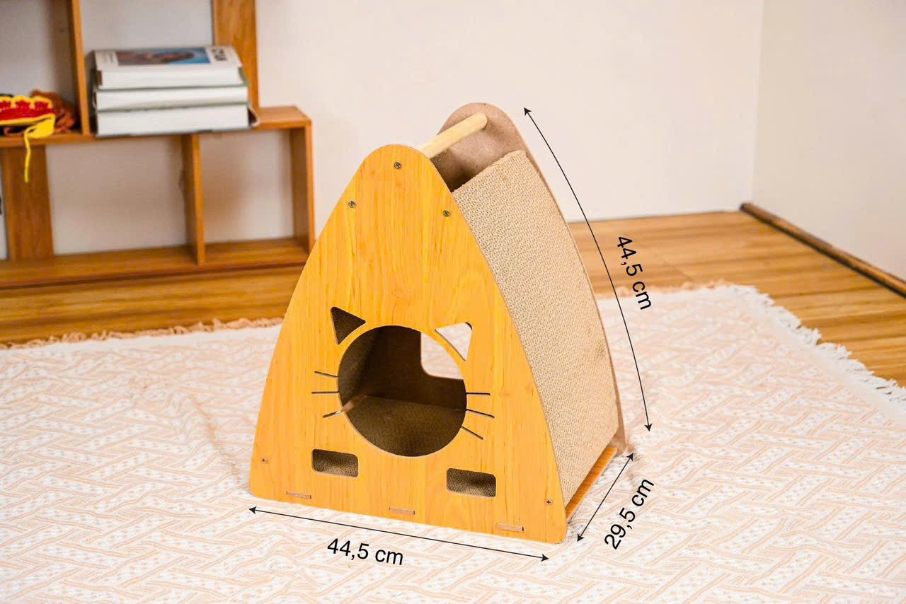 Bàn Cào Móng Mèo Gỗ Mix Giấy Nhiều Mẫu (Tặng Kèm Cỏ Mèo)