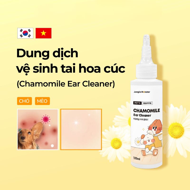 Dung Dịch Vệ Sinh Tai Cho Chó Mèo Jungle Monster Chamomile 120ml